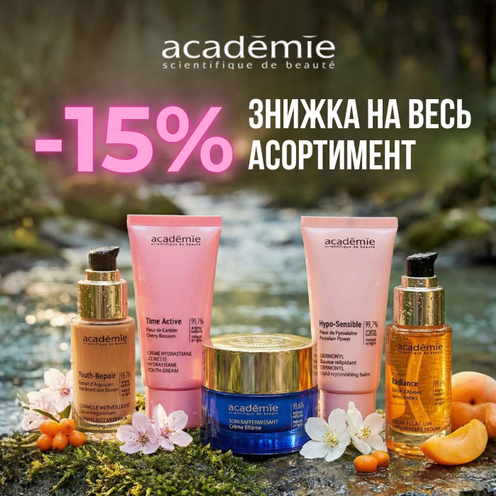 Знижка 15% при покупці 2-х будь-яких засобів Academie!